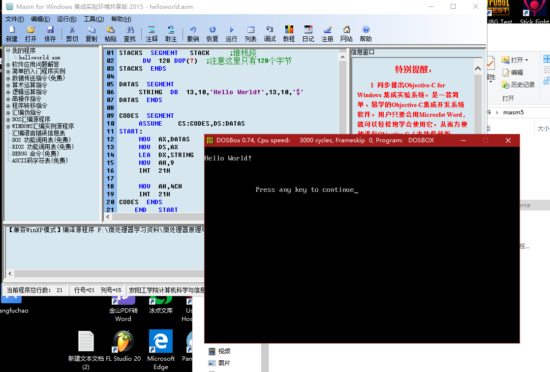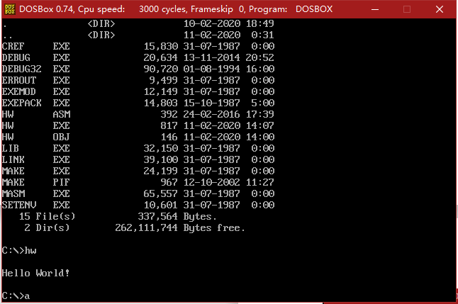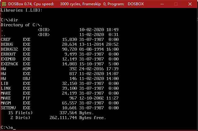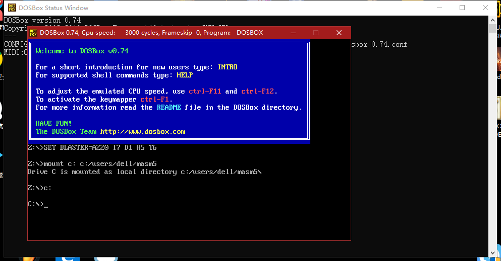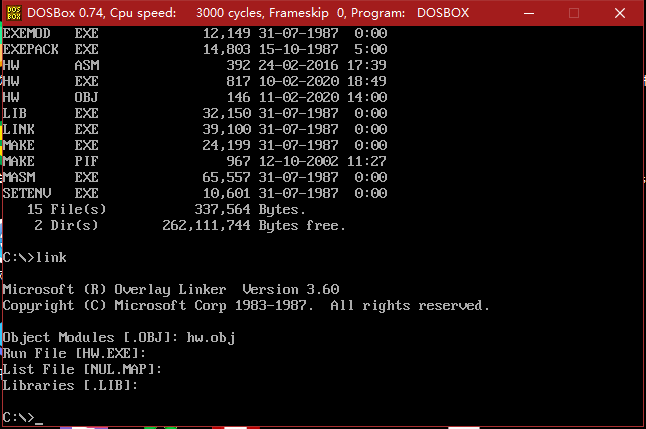 3.掌握 win7 win10使用 DOSBox 实现虚拟 DOS 环境下 masm5 的编译和运行